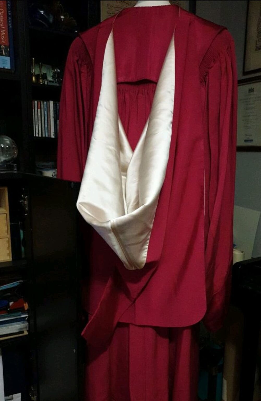 St Andrews reintroduced hoods in 1860. The faculty colours are borrowed from the French system, so Science is amaranth. Doctors’ hoods are made in the faculty colour (as is the robe) and lined with white satin.