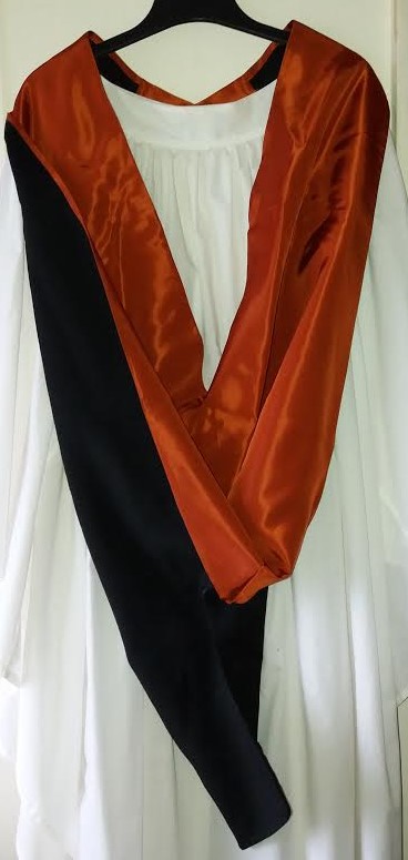 Although the University of Manchester Institute of Science and Technology (UMIST) had achieved university status in 1955, it continued to award Victoria degrees until 1993, when it became independent. It formed the Faculty of Technology of the VUM, and awarded the degrees in technology, designated BSc(Tech) and MSc(Tech). The colour of the faculty was terra-cotta, the BSc(Tech) being black, bound 1” terra-cotta and bordered 1” fur, and the MSc(Tech) being black lined and bound terra-cotta.